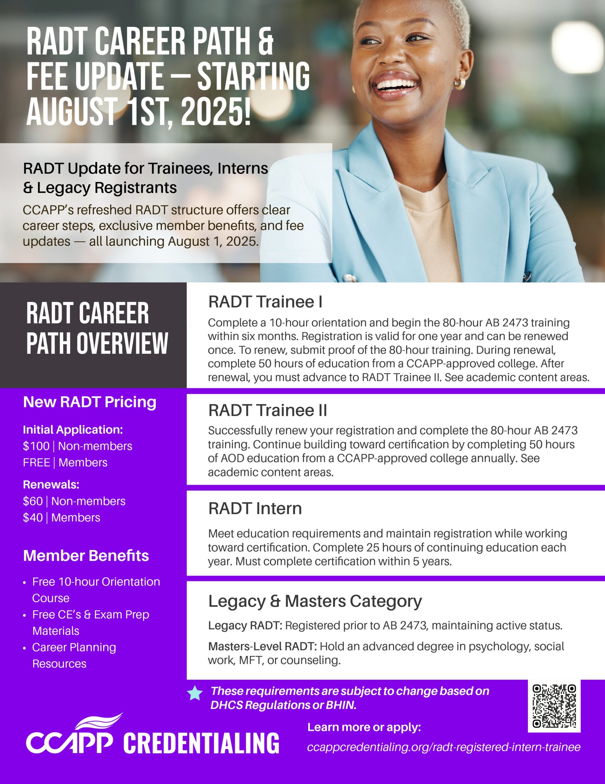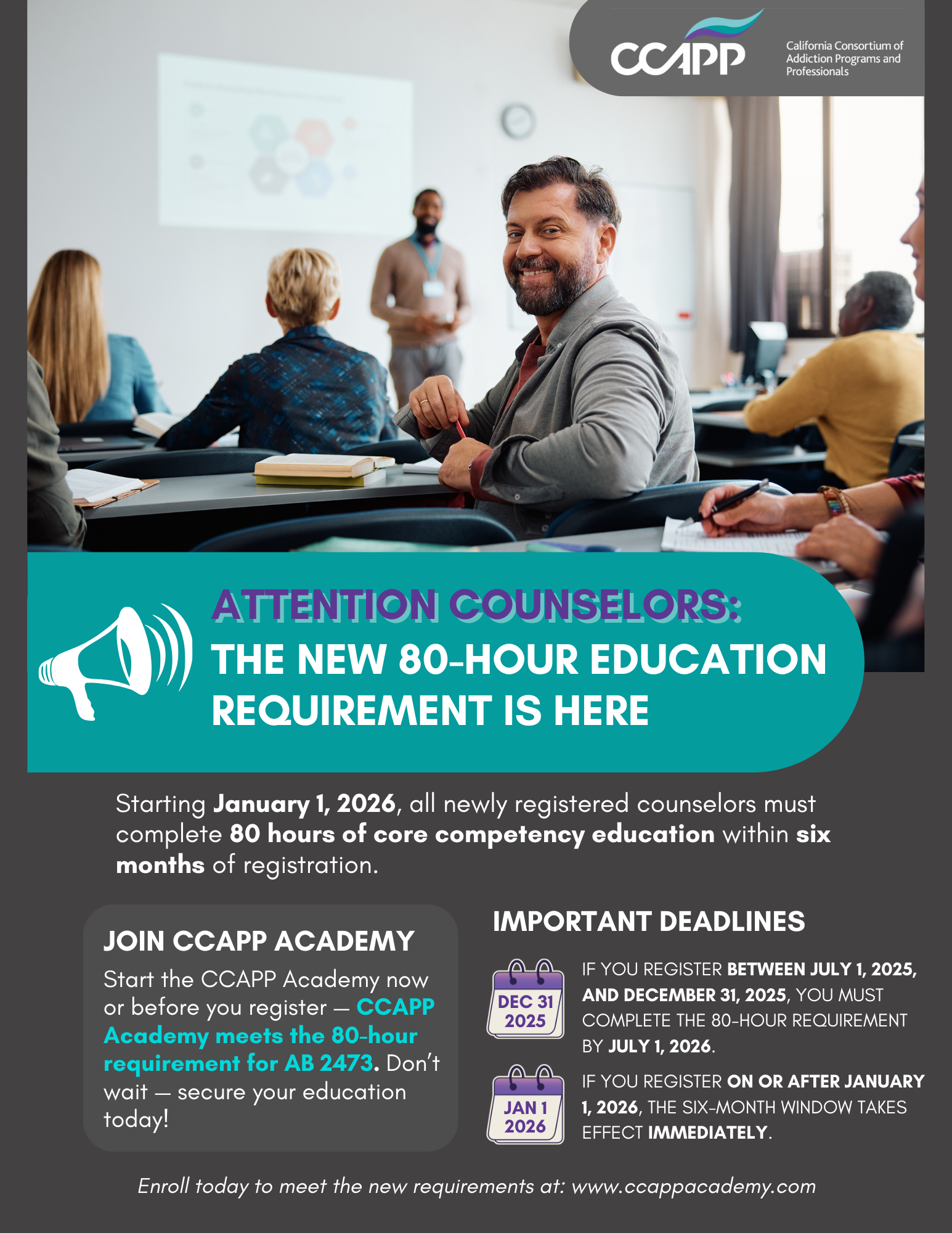 CCAPP is the largest and longest-standing organization dedicated to supporting addiction programs and professionals in California. We believe your profession is your passion, and we’re here to support and empower you every step of the way.